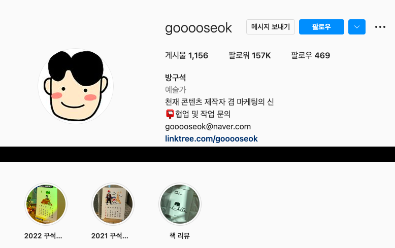 인스타그램 이외의 활동은 링크트리를 통해 확인 가능합니다. https://linktr.ee/gooooseok