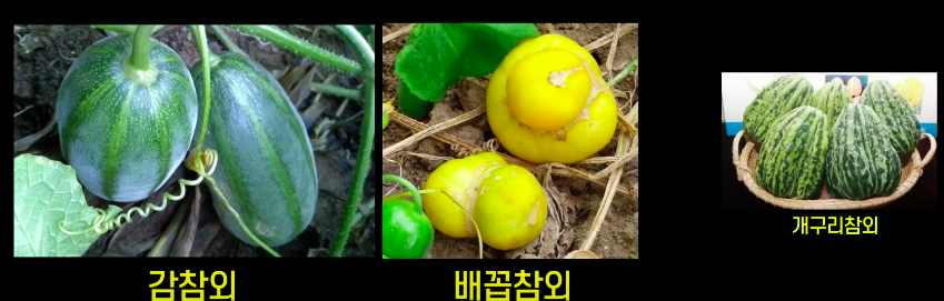 참외의 종류 : 감참외, 배꼽참외, 개구리참외, 열골참외, 강서참외, 먹참외, 깐치참외, 안종참외, 조선참외, 은천참외 등이 있습니다.